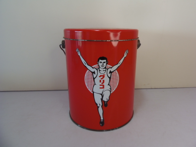 ●r143 【グリコ】 丸 缶(中身無) ※難有(錆・メッキはがれ・凹み傷・色褪せ有)