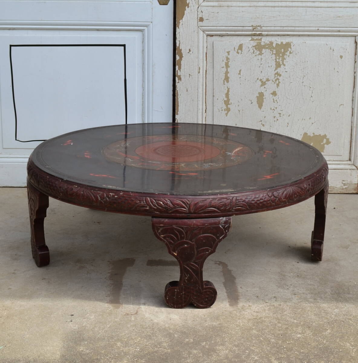 - [禅] 中国美術 ローテーブル センターテーブル 唐物 螺鈿 朱塗 漆芸 彫刻 古木 木彫 極細工 細密彫刻 円卓 ちゃぶ台 古家具 古民具 古道具