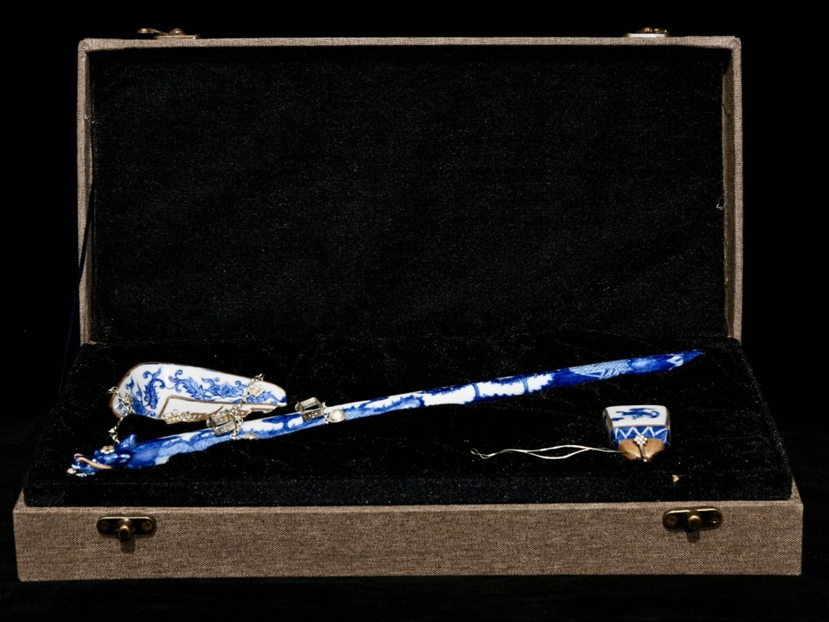- 「清 雍正己丑年寧王府督製 陶磁器 塗金青花龍紋 稱」染付 置物 擺件 古賞物 中国古美術 旧蔵出