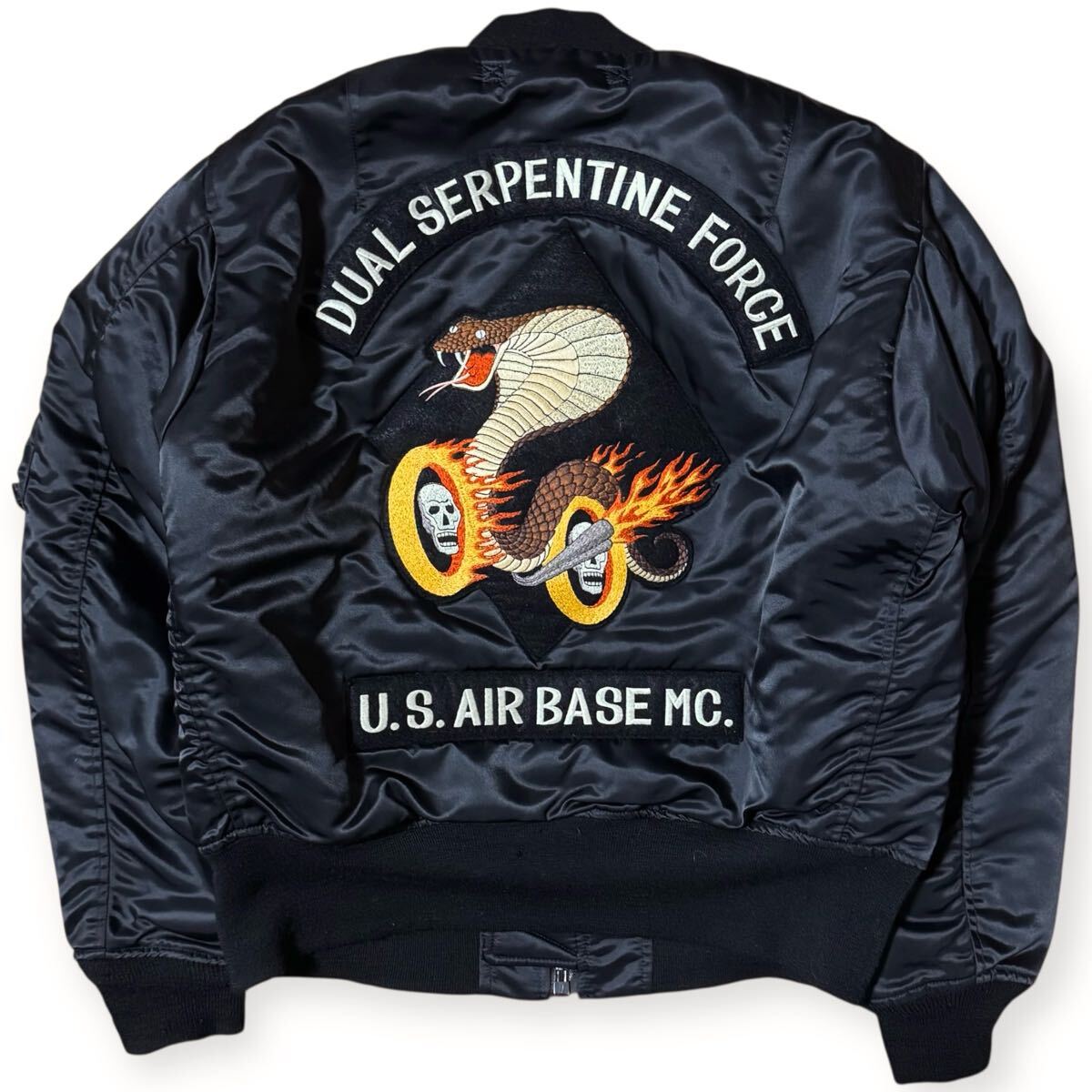 - 雰囲気抜群 Pherrows C.C.MASTERS 初期 コブラ刺繍 中綿 MA-1 カスタムフライトジャケット ブラック Sサイズ