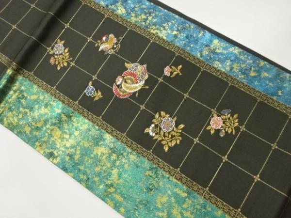 > ys7405903; 宗sou 引箔鳥に草花・格子模様織出し名古屋帯【着】