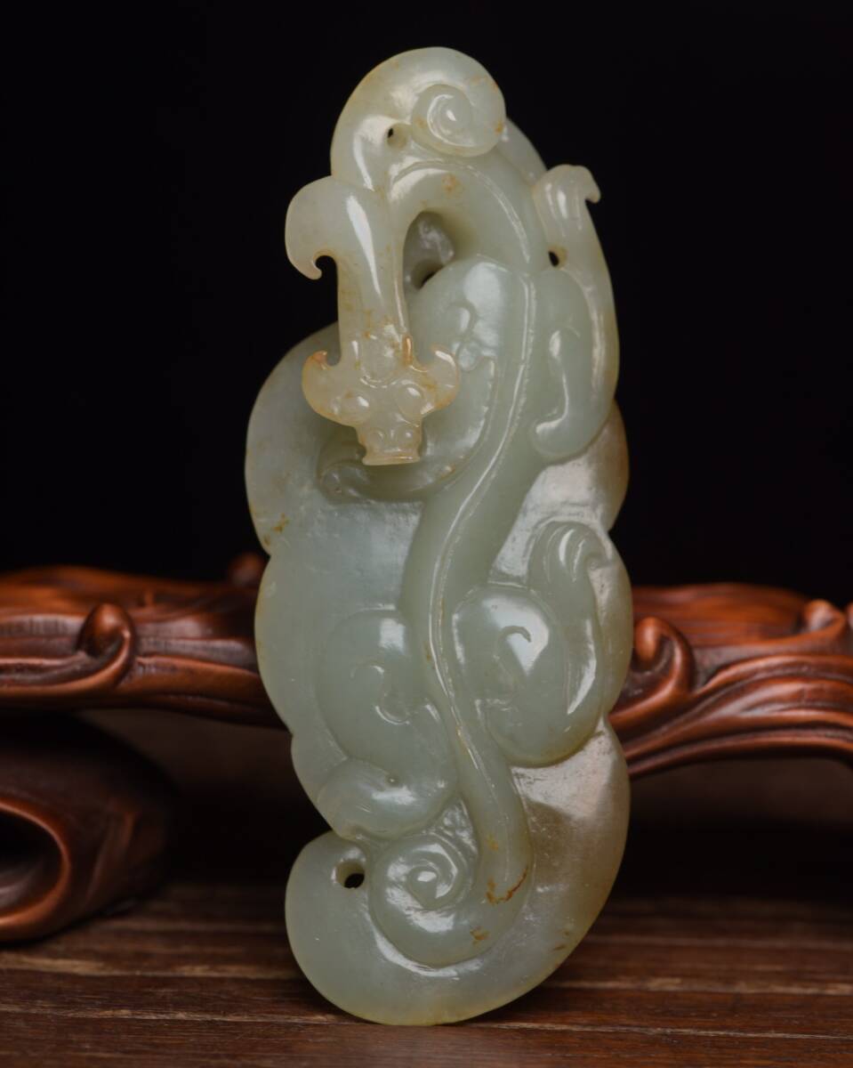 - 【超珍館蔵】和田玉製 細密彫 玉龍 置物 賞物 古賞物 古董品 古美術品 時代物 旧家蔵出 稀少珍蔵品