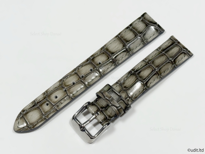 - ラグ幅18mm レザーベルト クロコダイル型押し グレー 腕時計ベルト 時計用バンド 尾錠シルバー LB10