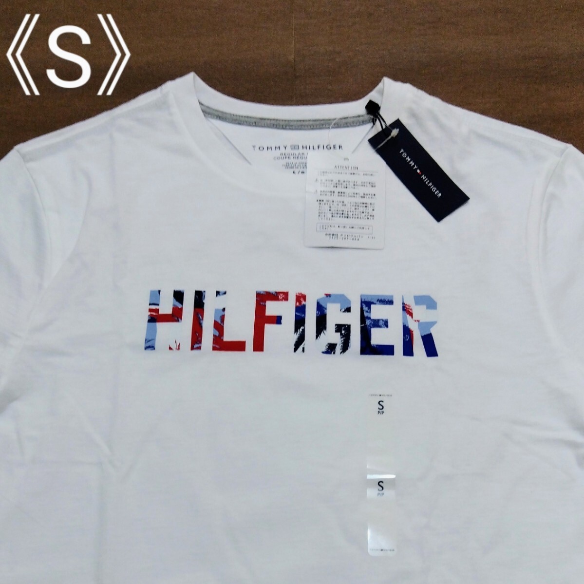 > [新品] TOMMY HILFIGER トミーヒルフィガー Tシャツ HILFIGERロゴ フローラル 男女兼用 フローラルフォント 白 Sサイズ