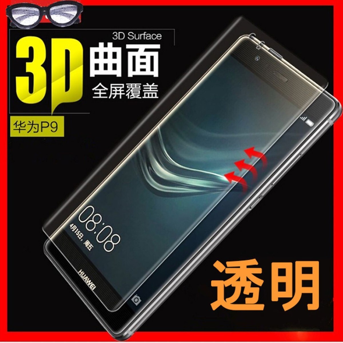 > HUAWEI P9 5.2インチ 9H 0.26mm 全透明 全面保護 3D曲面カバー 強化ガラス 液晶保護フィルム 2.5D K270