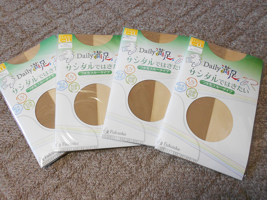 - Daily 満足 つま先スルータイプ / L~LL 4足 新品 福助 パンスト サワーベージュ