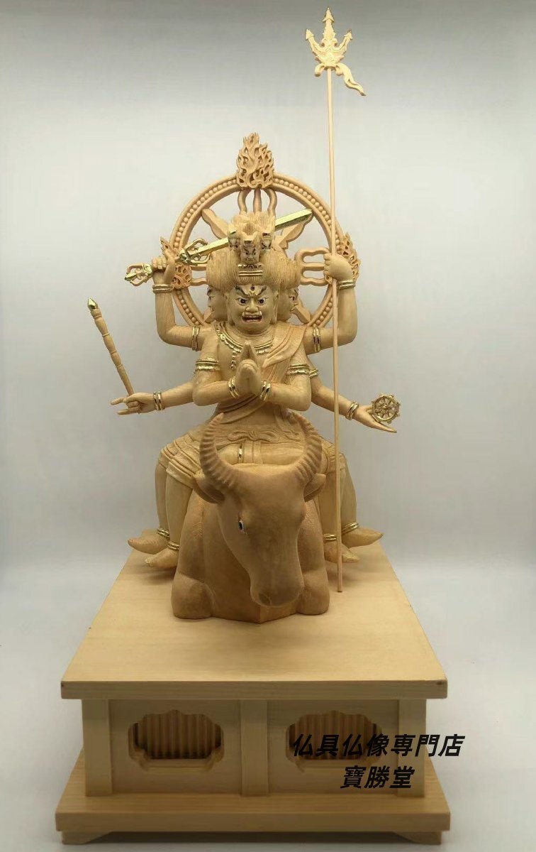 - 木彫仏像 仏教美術 精密細工 仏師で仕上げ品 総檜材 切金 大威徳明王像【送料無料】【仏具仏像専門店寶勝堂】