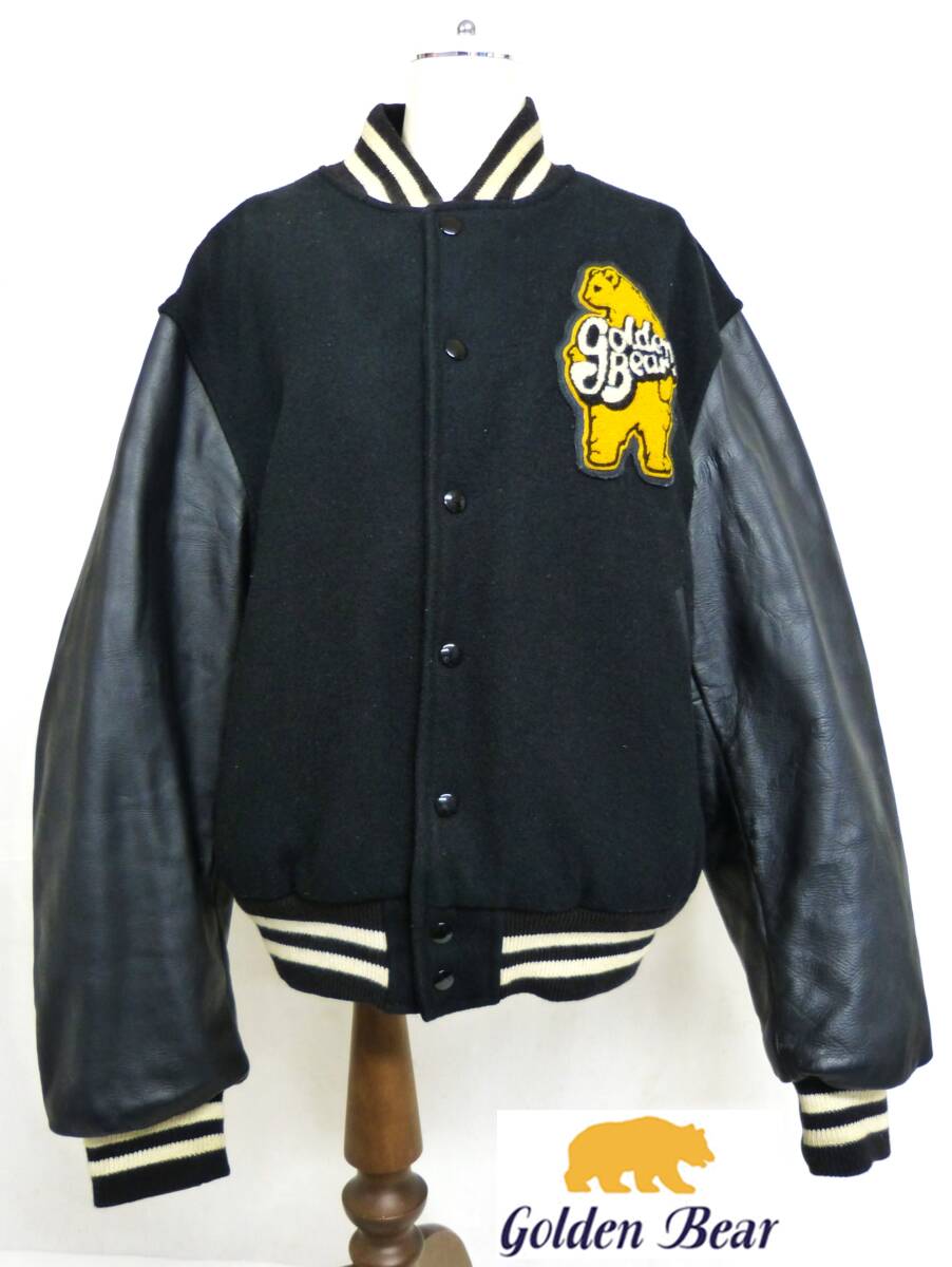 > ゴールデンベア goldern Bear スタジャン Lサイズ 黒 ブラック MADE IN USA アメリカ製 袖本革 ブルゾン RN♯76824