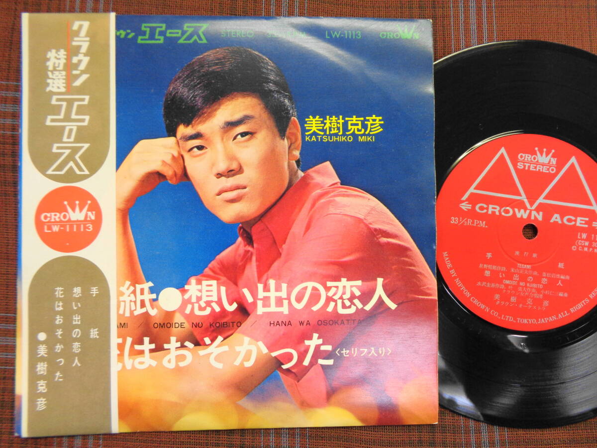 - e#6361◇帯付EP◇ 美樹克彦 手紙 / 想い出の恋人 / 花はおそかった(セリフ入り) 昭和 歌謡 LW-1113