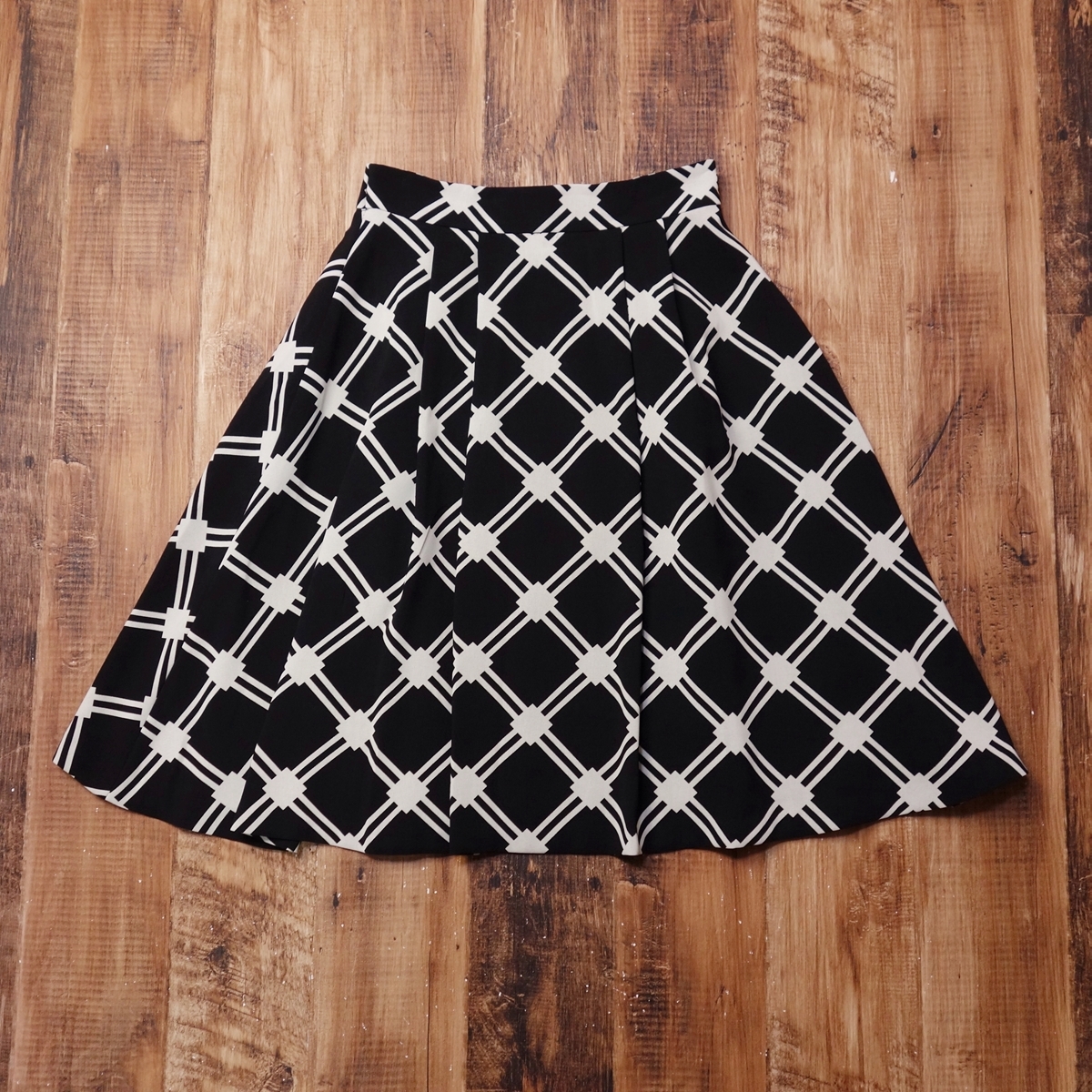 - 美品 エムドゥ M.deux フレアスカート レディース モノトーン 幾何学柄 日本製 Sサイズ ブラック LA2