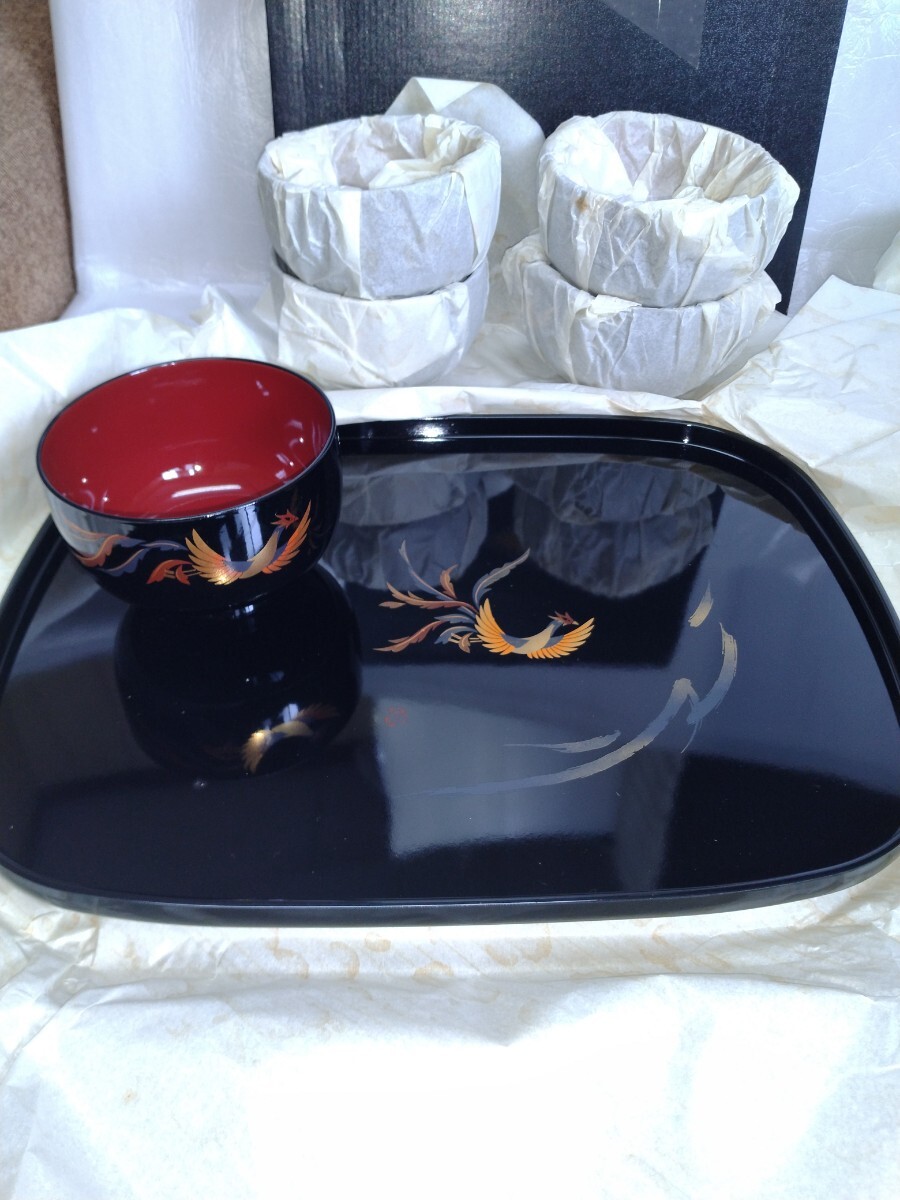 - K140 山中漆器 やまもと寛斎 ZEN 《小判盆付汁椀 鳳凰》 未使用長期保管品 漆器 汁椀 お椀 和食器