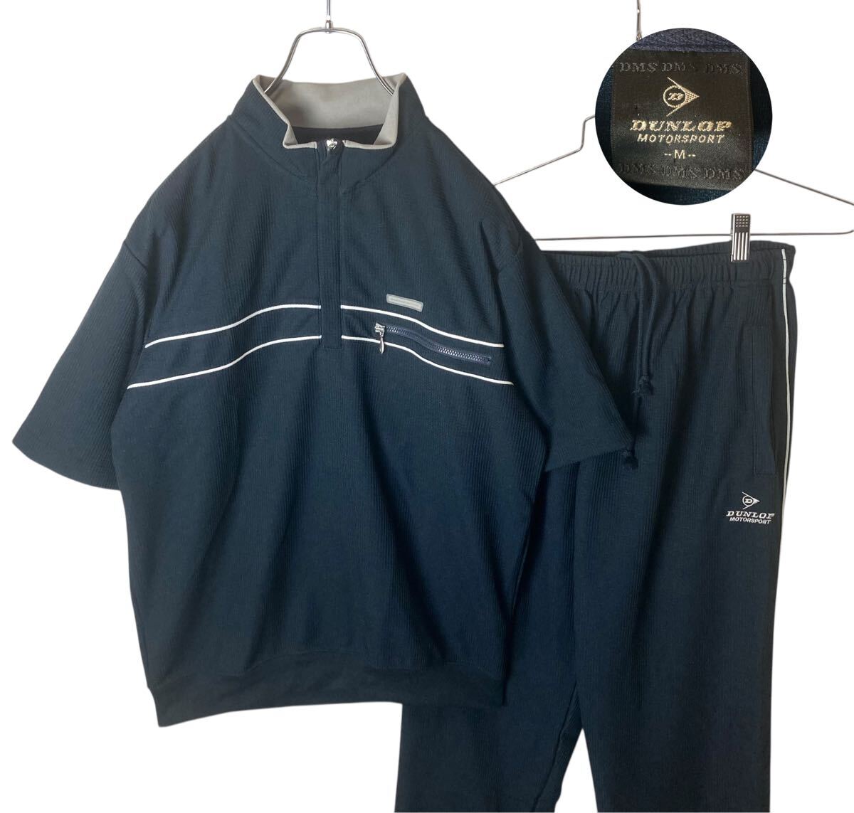 > グッドデザインハーフジッププルオーバー半袖ネイビージャージセットアップ上下セット