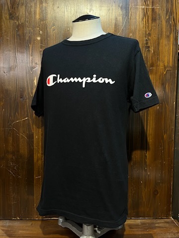 - L294 メンズ Tシャツ 人気 champion チャンピオン 半袖 シンプル ブラック 黒 スポーツ プリント ロゴ / L 全国レターパック配送