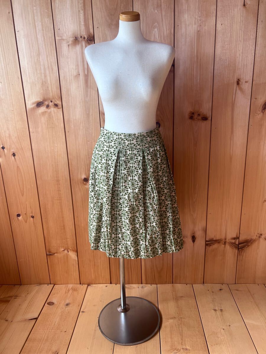 - シビラ/スカート/総柄/刺繍/M/ウール×ポリエステル/裏地付き/ライトグリーン/日本製/美品良品