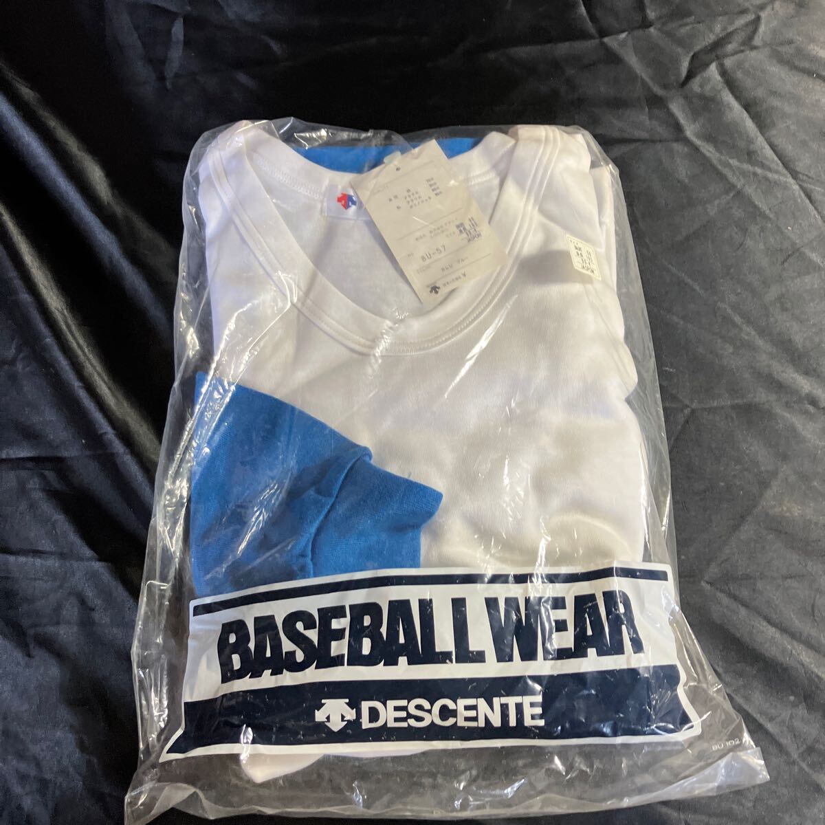 > B85 DESCENTE BU-57 長袖アンダーシャツ Mサイズ ホワイト×ブルー ヴィンテージ 新品未使用品 スポーツ