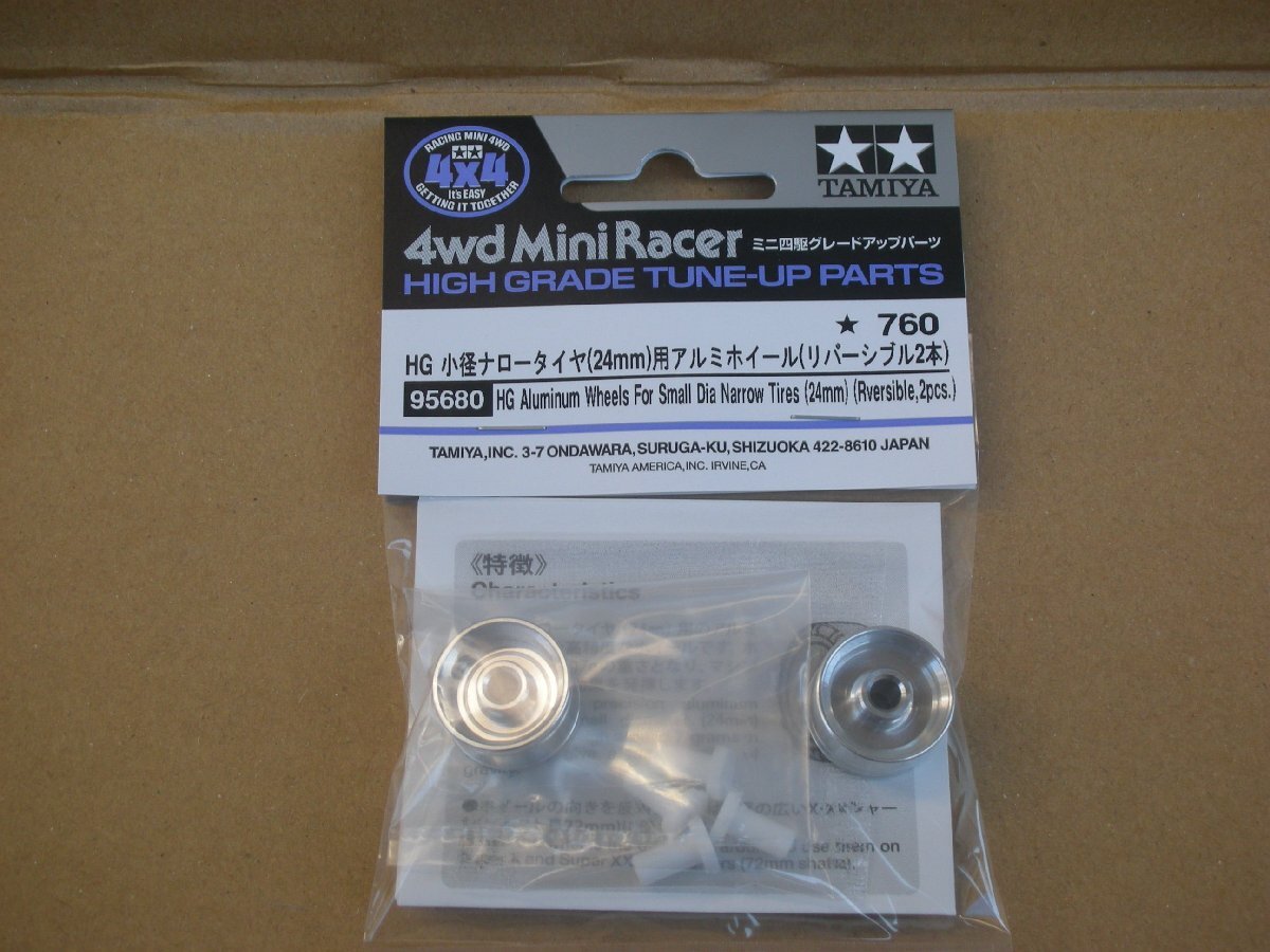 タミヤ ミニ四駆特別企画商品 HG 小径ナロータイヤ(24mm)用アルミホイール (リバーシブル2本) 95680 |