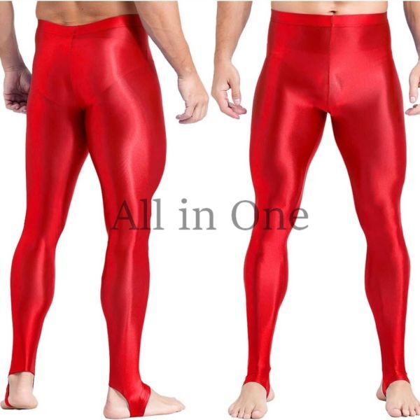 - 177-37-20 光沢 ツヤツヤ アンダーフット ストラップ【レッド,Lサイズ】男性 メンズ スポーツ レギンス コスプレ ジム ワークパンツ .2