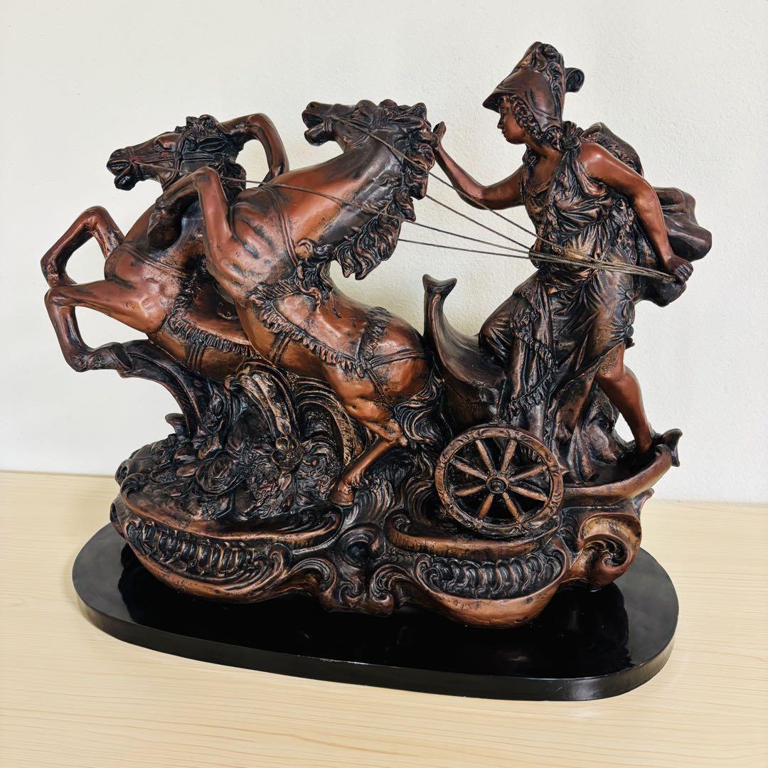 - 双頭の馬 ローマの兵士 置物 オブジェ ブロンズ インテリア 馬車と馬の彫刻