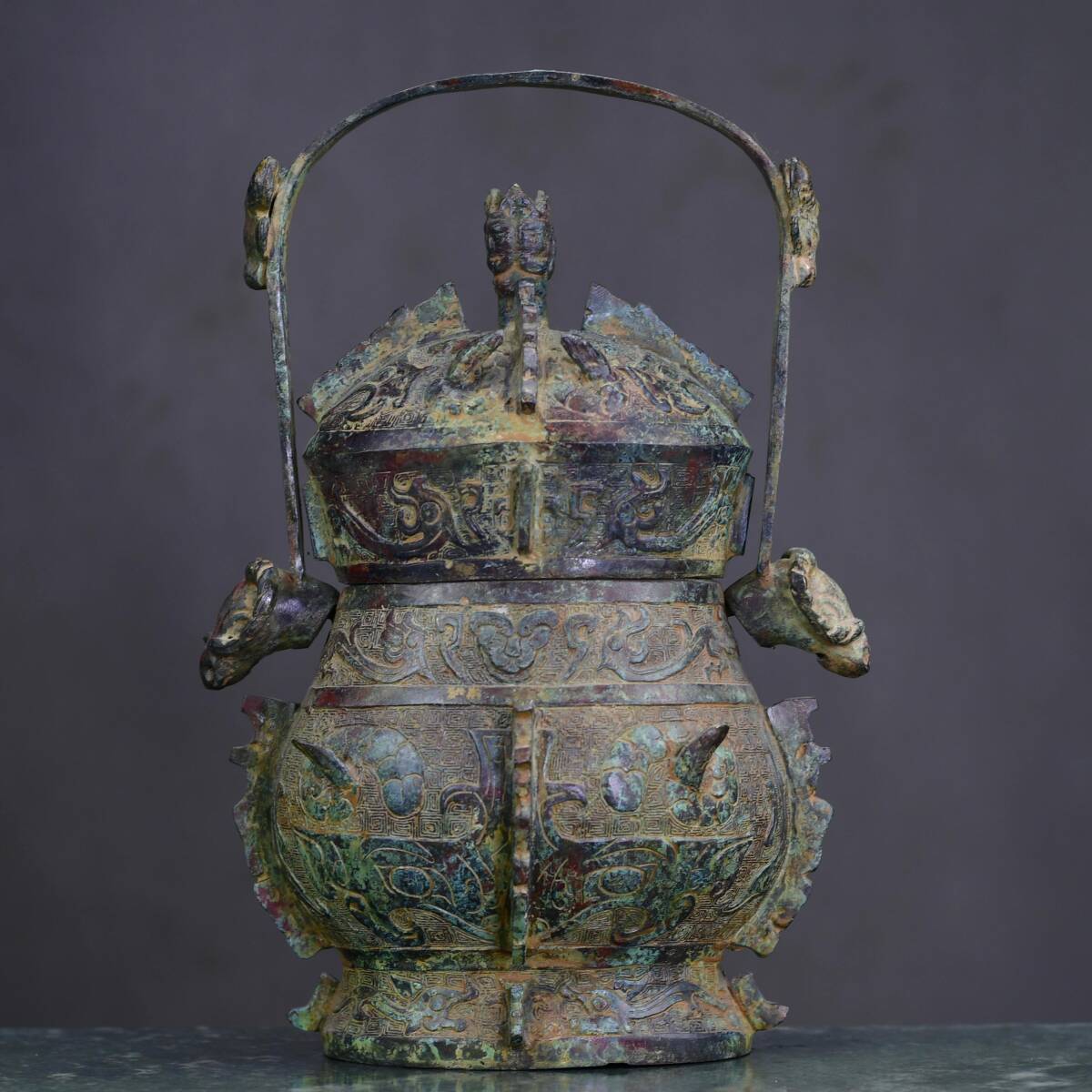 - 青銅器 旧蔵 商周時代 漢代青銅提梁 酒器,尊,鼎 銅製 唐物 收蔵品 時代物 古美術 古置物 希少珍品 供養品 文房具 極細工6.11