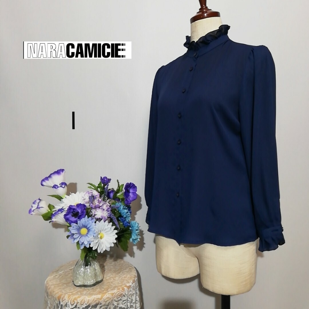 - 極上美品 ナラカミーチェ 長袖ブラウス ネイビー色系 Мサイズ