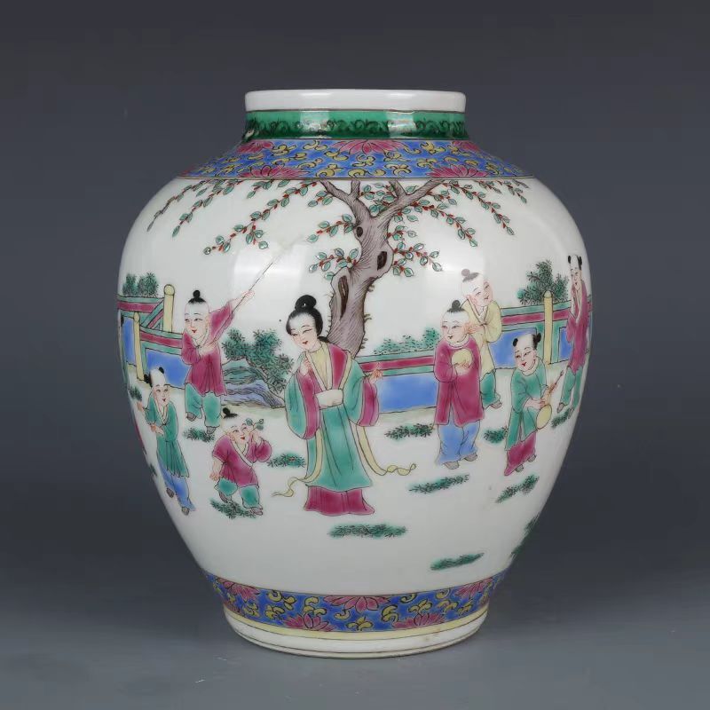 - 清時代 乾隆年製款 古陶磁器 粉彩 人物紋 罐子 磁器 文案置物 擺件 時代物 古董品 骨董 旧家蔵出し 唐物 中国古玩 古美術品