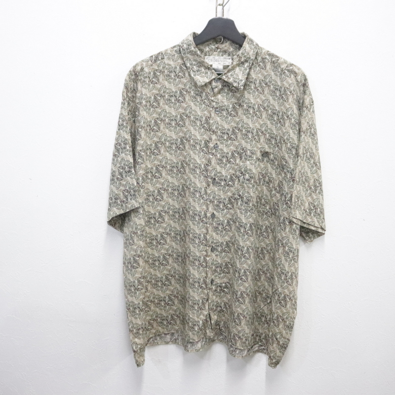 > D258 90sビンテージ CROSSINGS 半袖シャツ■1990年代製 表記XLサイズ ブラウン 総柄 レーヨン アメカジ ストリート 古着 古着卸 激安 希少