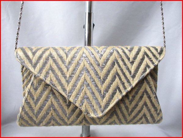 - 2way 大型クラッチバッグ◇麻紐等 IV×SV チェーンショルダー W32cm