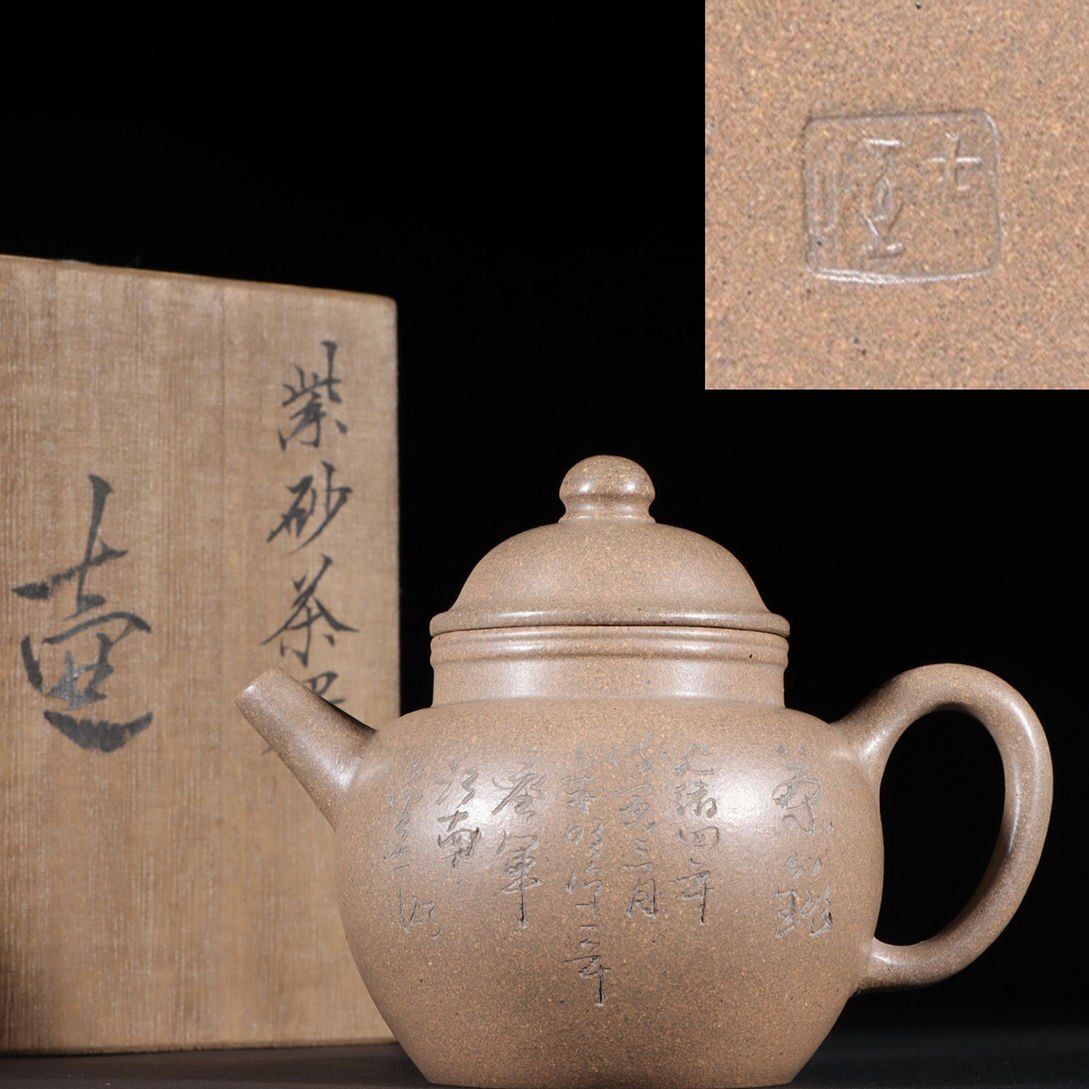 - ■観心・時代旧蔵■W1858時代朱泥 詩文蓮子紫砂壺 在銘 金士恆 清代/紫砂 煎茶道具 朱泥 茶壺