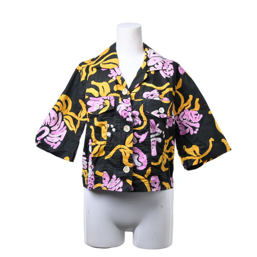 > MARNI プリント クロップド 半袖シャツ 40 ブラック マルニ KL4BSABK71