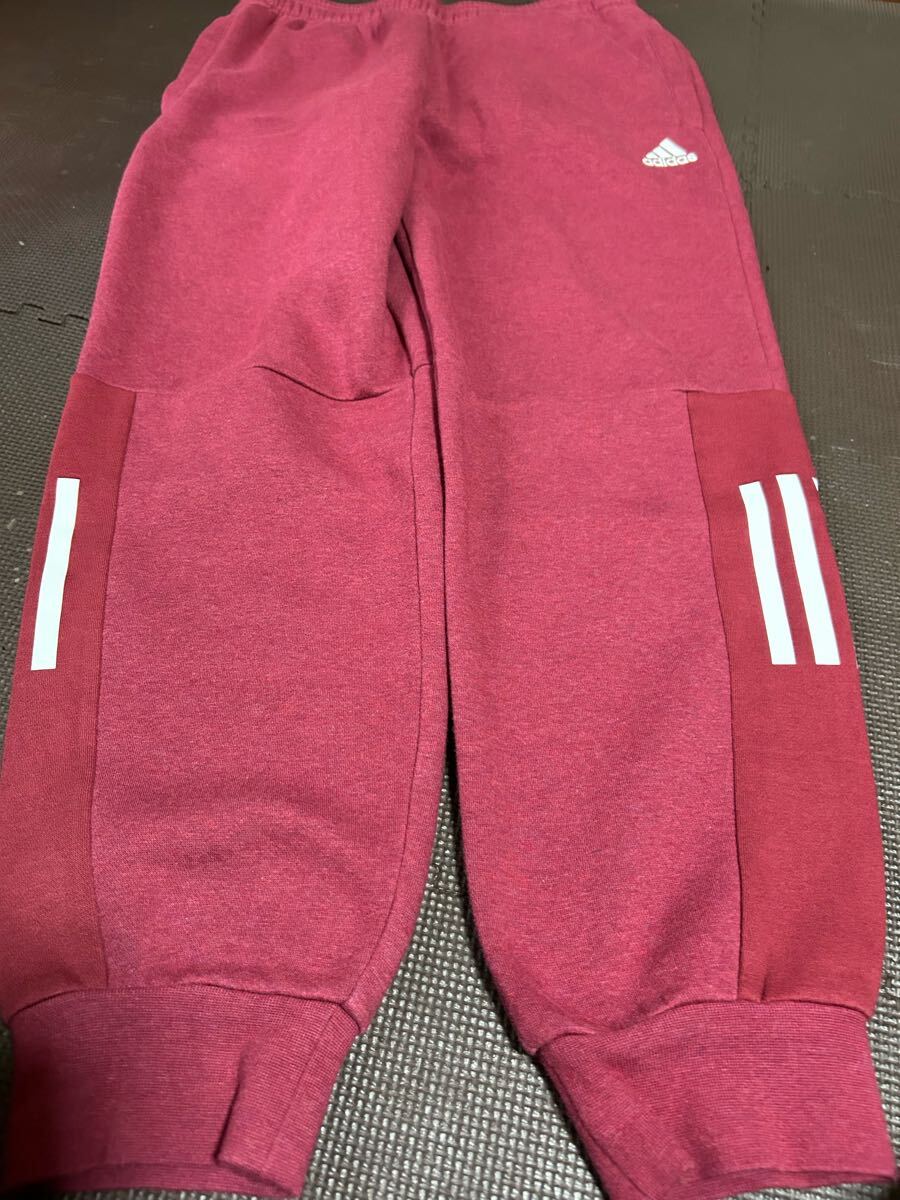 - 美品adidasスウェット渋め赤、ロゴ白、ライン白3本ストレッチパンツ サイズM
