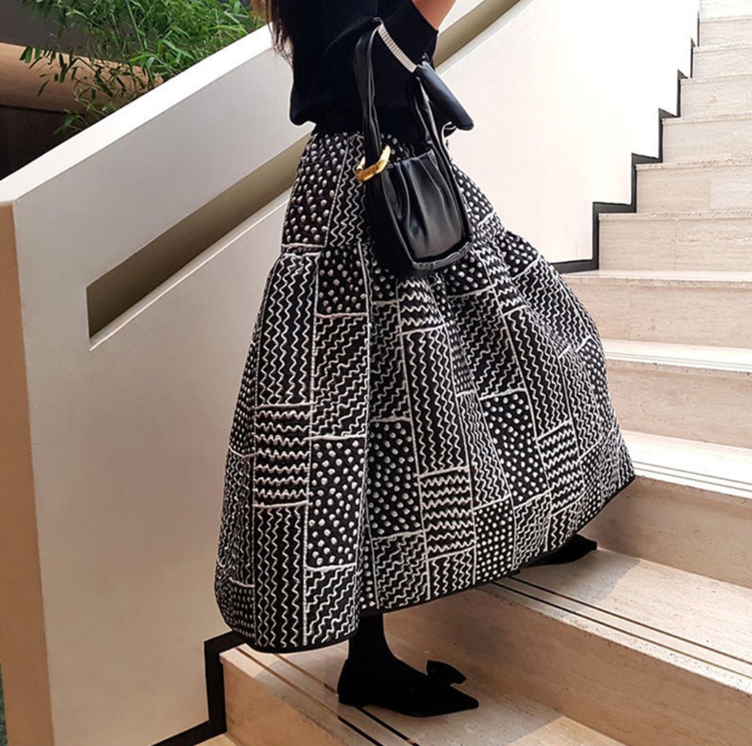 - 新品 ジャガードスカート ロングスカート フレアスカート ブラック ハリ感 ふんわり 春 秋 冬 ホワイト 10代 20代 30代 40代 50代