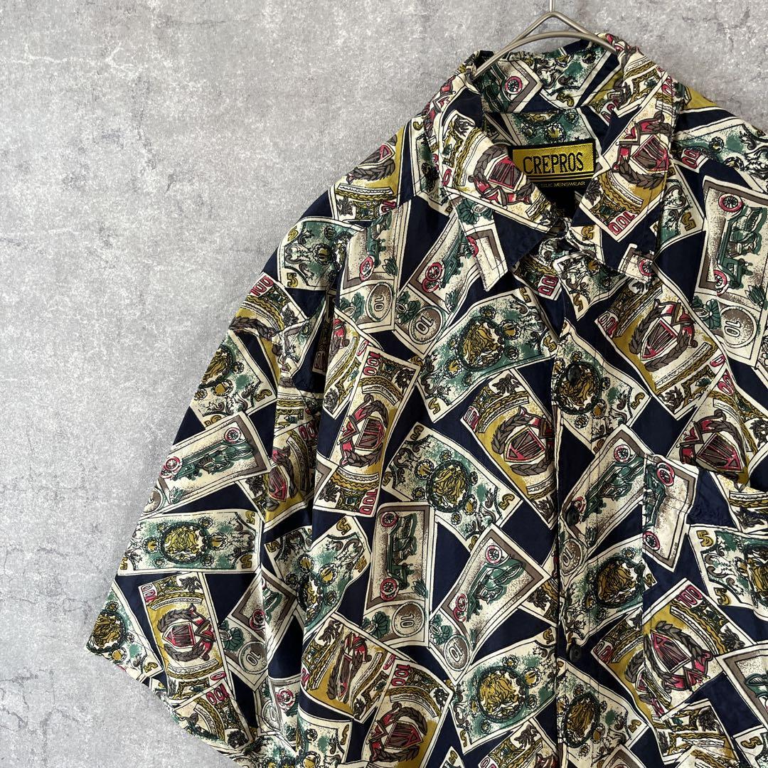 - CREPROS シルクシャツ マネーデザイン 紙幣柄シャツ 半袖 大きめMメンズ
