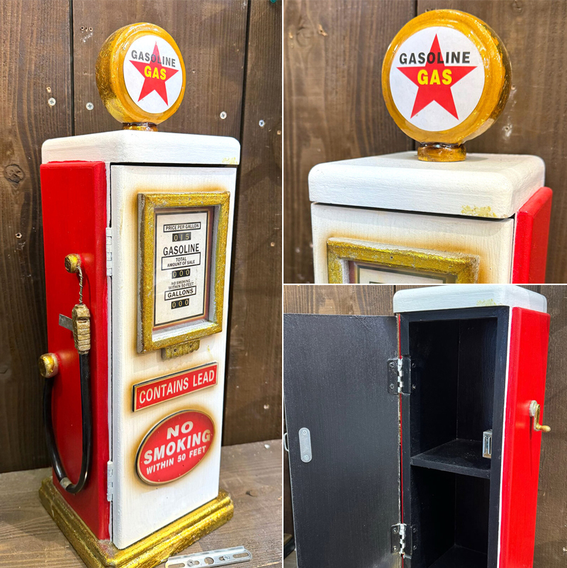 > ラック 棚 収納ラック 収納棚 アメリカン おしゃれ インテリア 扉付き 2段 本棚 ガソリンスタンド風 デザイン 赤 白 おもしろ かっこいい
