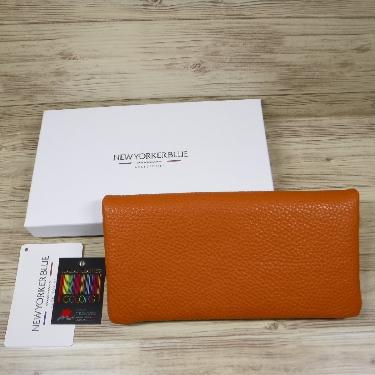 - QQ390 ニューヨーカー NEWYORKER BLUE 新品 イタリアンレザー ソフト牛革 長財布 カード11枚収納 キャメルオレンジ