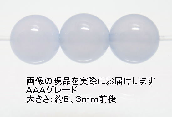 - (閉店価格)NO.9 ブルーカルセドニーAAA 8mm(3粒入り)<憂鬱の解消>高品質天然ブルーカラー 天然石現品