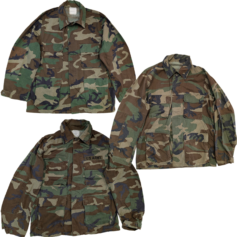 - 【3枚まとめ売り】90-80s U.S.ARMY 古着 迷彩柄 ウッドランドカモ リップストップ ミリタリー BDUジャケット USA製 vintage ③ F
