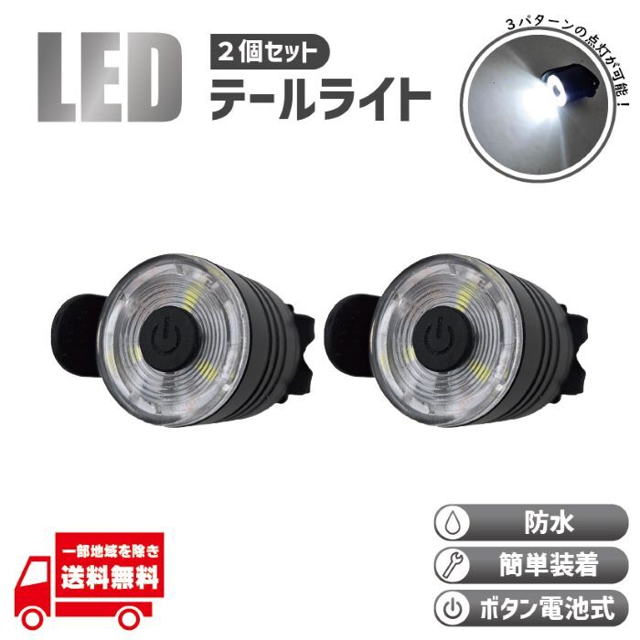 - 自転車 テールライト テールランプ テール ロードバイク クロスバイク バイク ボタン 電池 LED 防水 尾灯 白 ホワイト 2個 セット