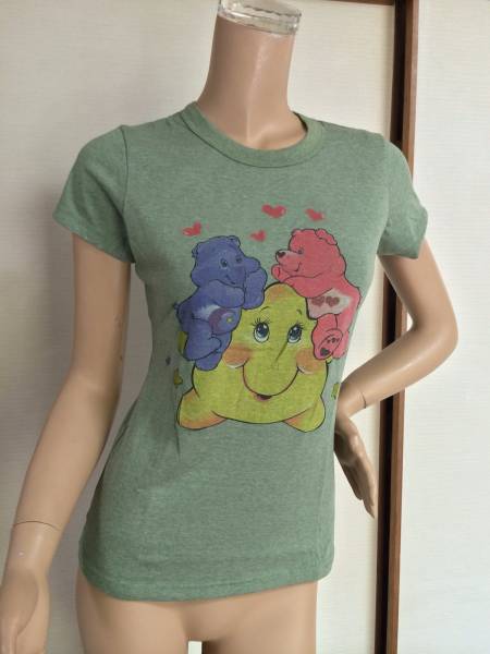 > 匿名配送 送料無料 新品 肌触りが良い ケアベア Tシャツ 半袖 グリーン クラシック 綿100 レトロ 緑 ハート レディース 海外製