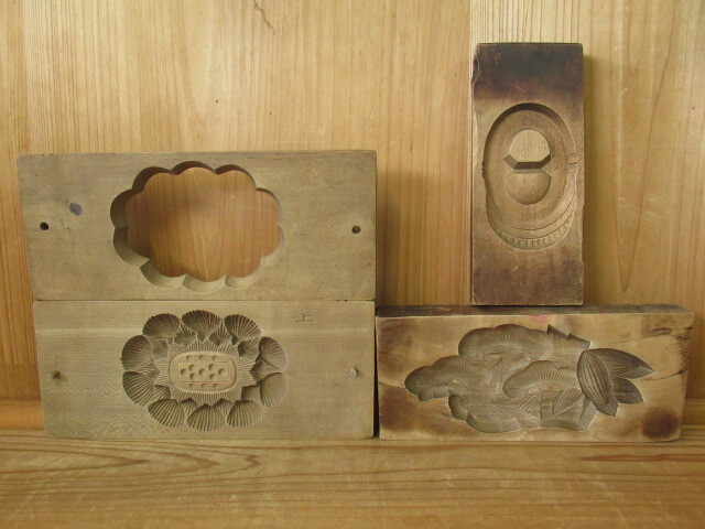 - ◆古い菓子型:26:◆『松』『花』『竹』◆3種3型◆木製菓子型◆手彫◆古道具◆造形美:民芸◆