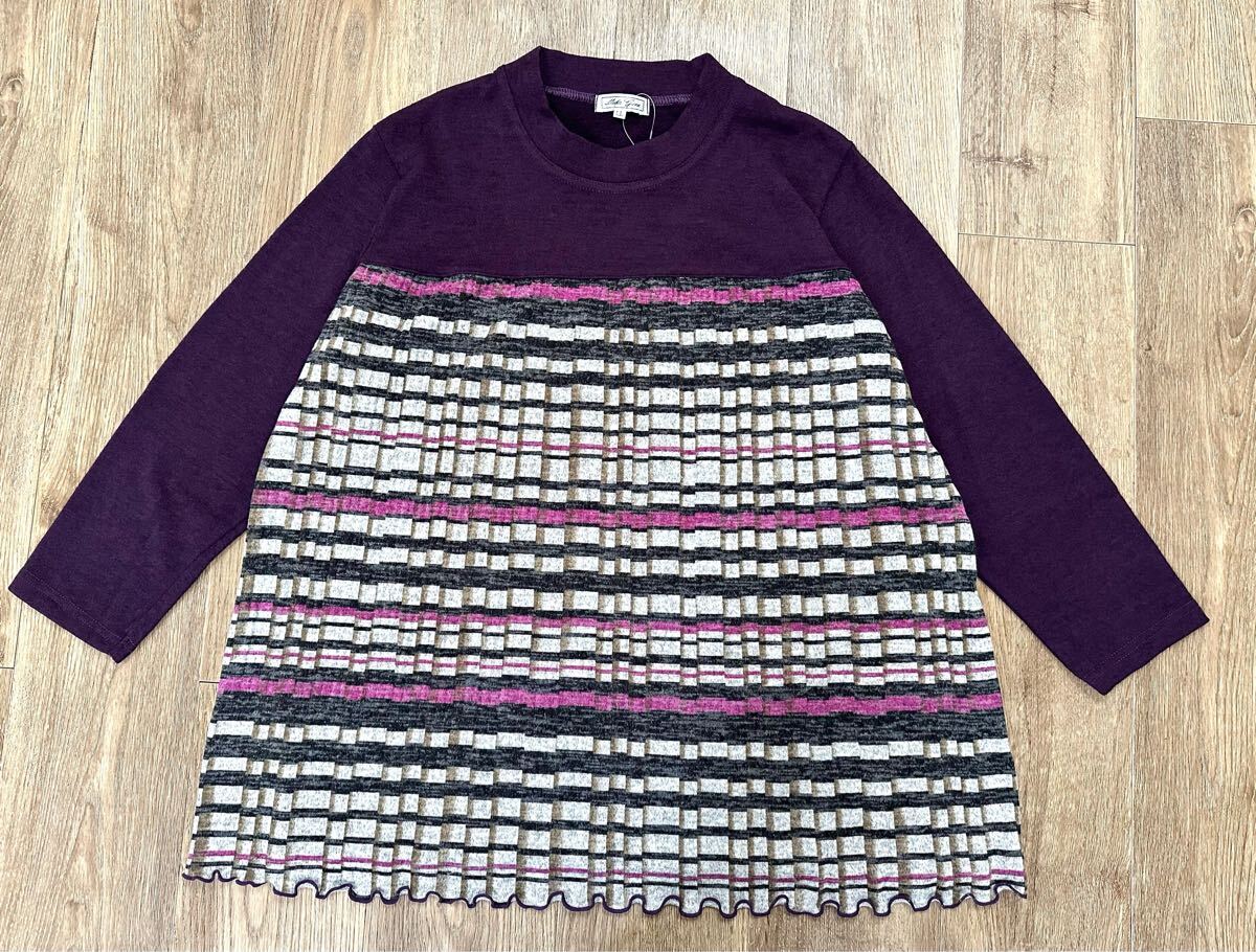 - 新品 タグ付き 変形チェック柄 切替ニット 長袖プルオーバー LLサイズ 秋冬 ゆったりサイズ