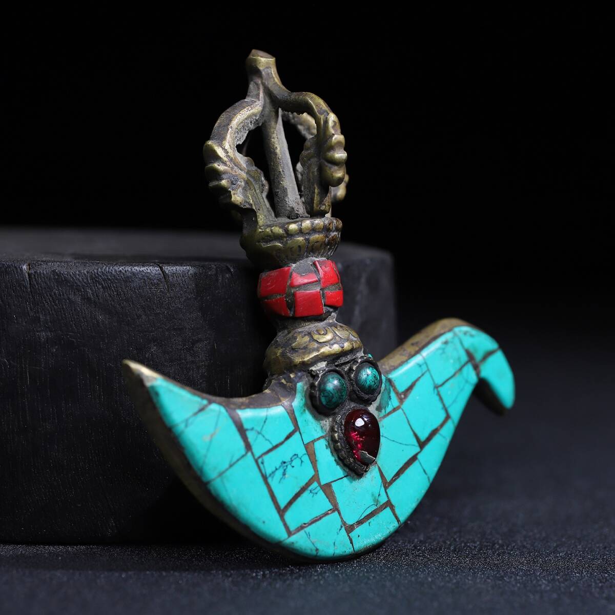 > TM6#2709【3.1】中国骨董 人間国宝 [ 旧蔵黄銅象嵌金剛斧鉞刀法器] 銅器 金属工芸品 古玩收藏 復古 置物 純銅鋳造 開運風水