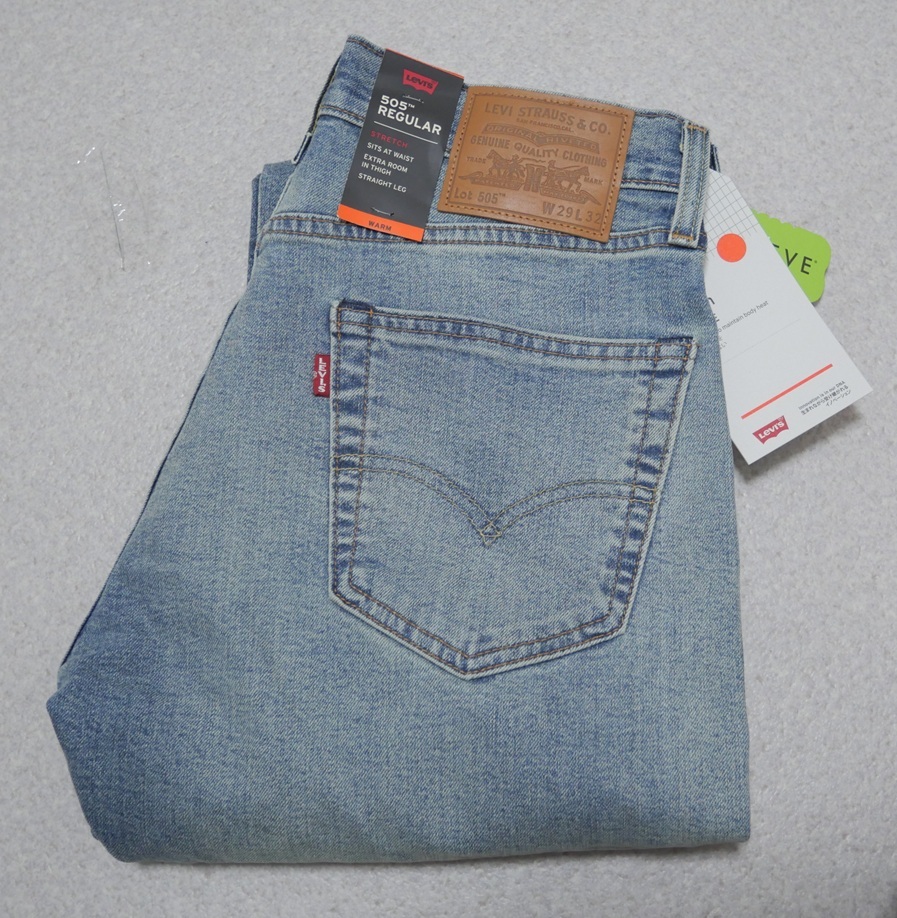 > 未使用品 LEVI'S 505 WARM ストレッチデニムパンツ 青 W29 USED加工 ジッパーフライ リーバイス 00505-2101
