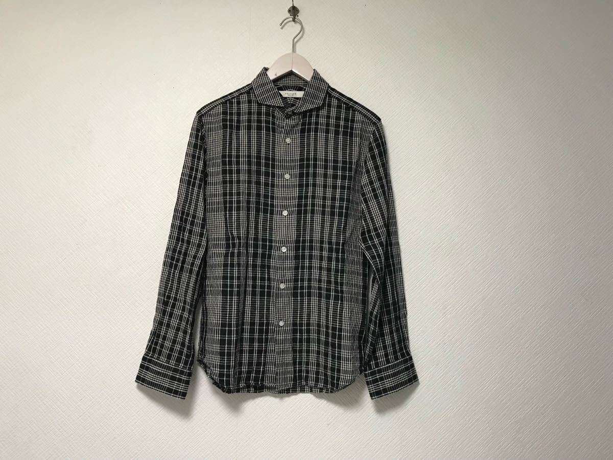 - 本物エディフィスEDIFICEリネン麻チェック柄ドレス長袖シャツメンズワークビジネススーツモードドレスゴルフ白ホワイト黒ブラックM