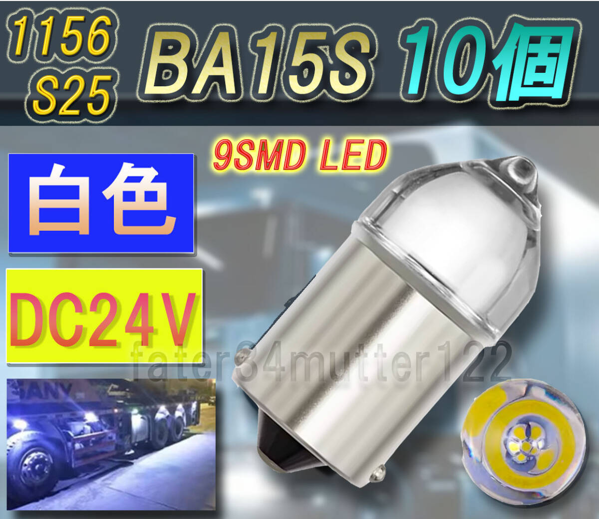 - 新型クリアカバーLED DC24V 白色 10個 シングル球 S25 1156 サイドマーカー テールランプ マップランプ