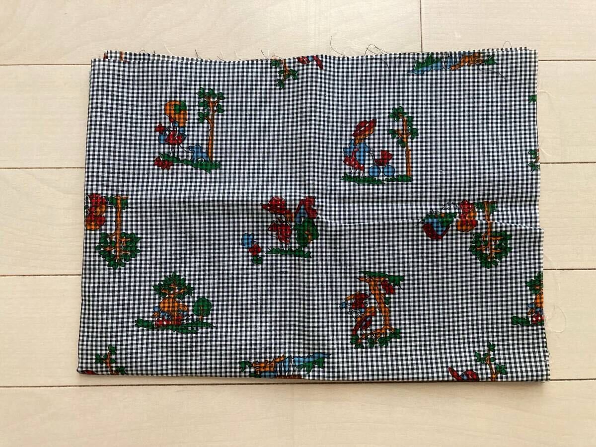 - レトロ生地 ハギレ 黒チェック柄 イラスト