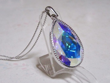 - 虹の煌めき!クリスタルオーロラスワロフスキーの大粒な雫ペンダントNO.3