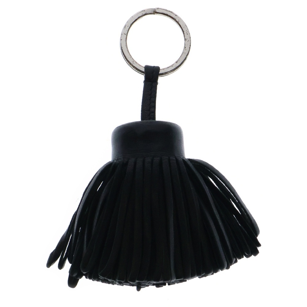 - HERMES エルメス カルメン フリンジチャーム バッグチャーム キーリング シルバー金具 ブラック レザー