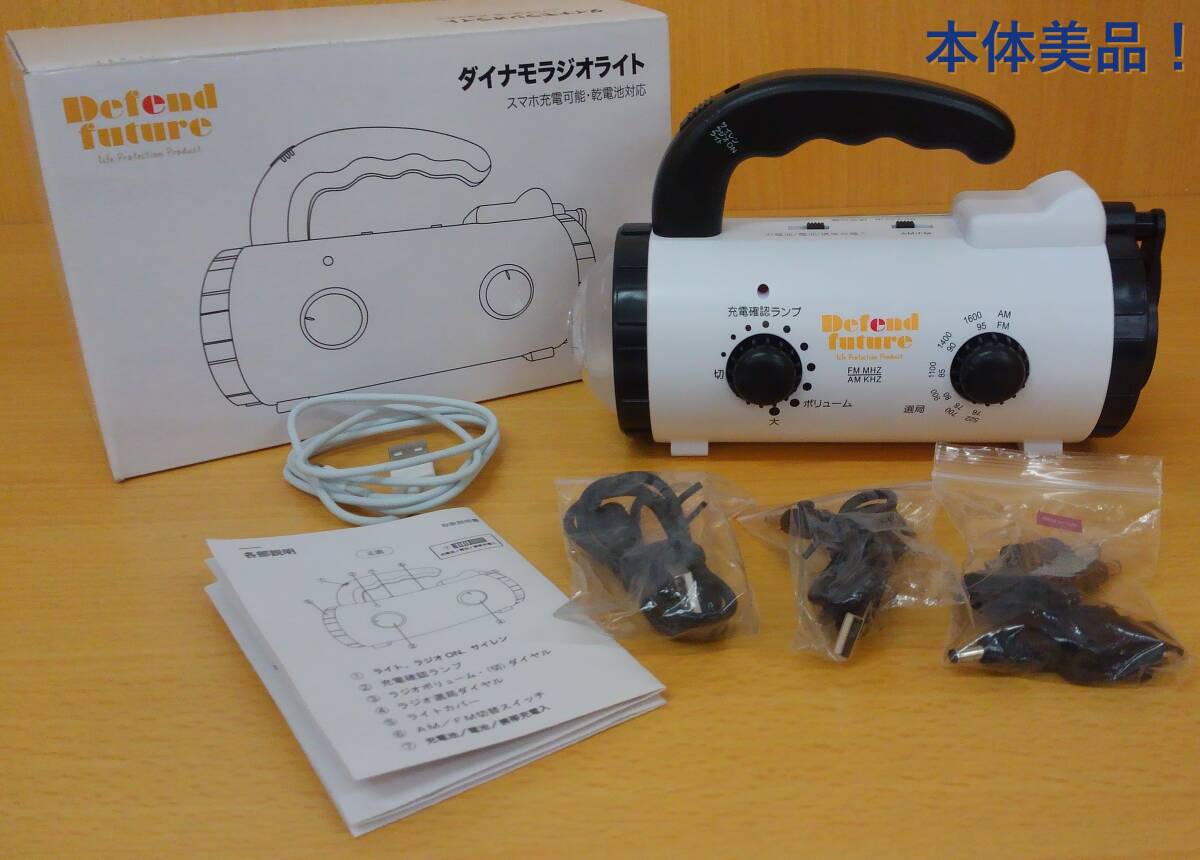 > 【菊水-123】★美品★Defend future ダイナモラジオライト■白■乾電池対応/防災/災害対策(IS)