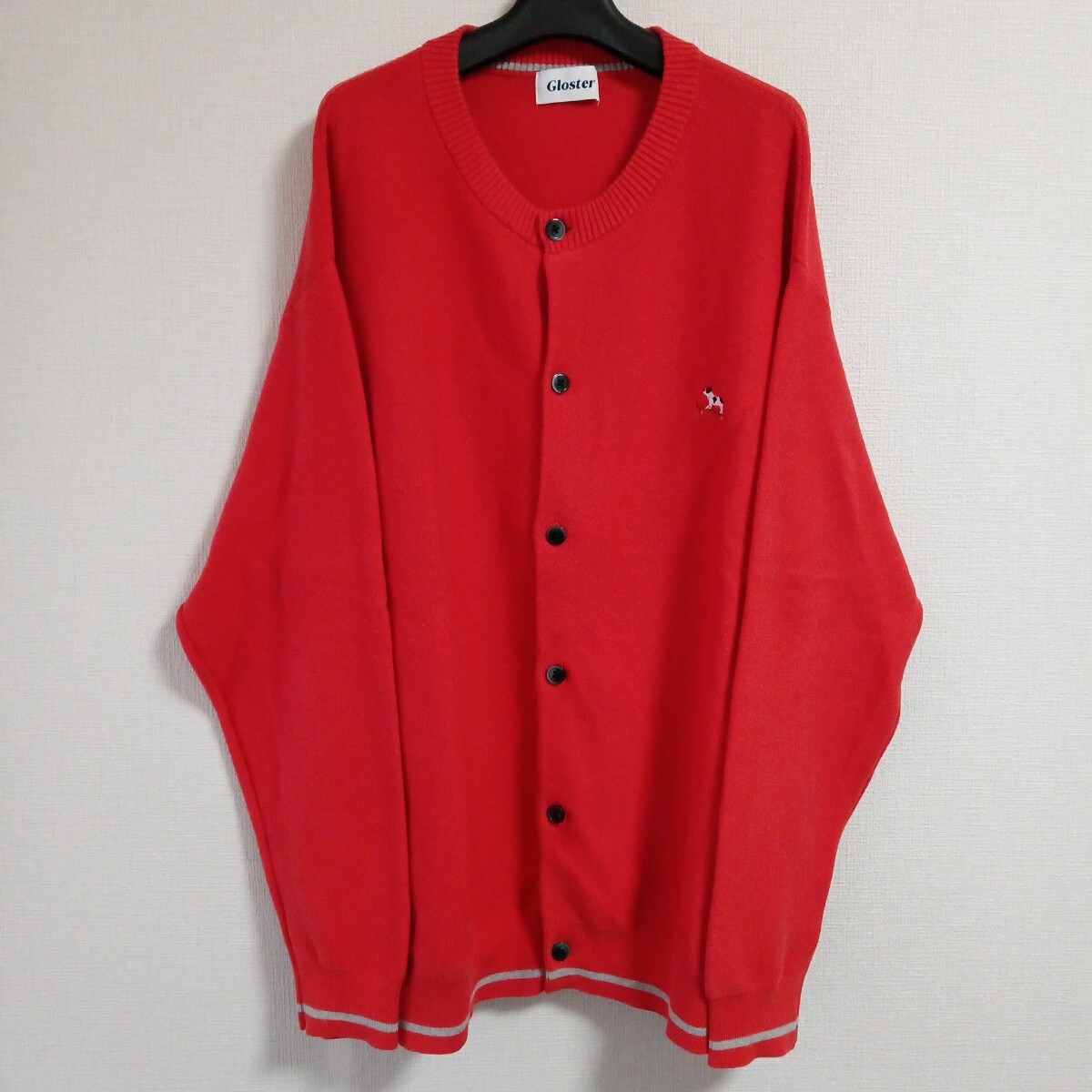 - Gloster スケーターワンコ刺繍ボタン付ニットカーディガングロスター ドッグ スケートボード フロントボタン 裾ライン トラッド 定番