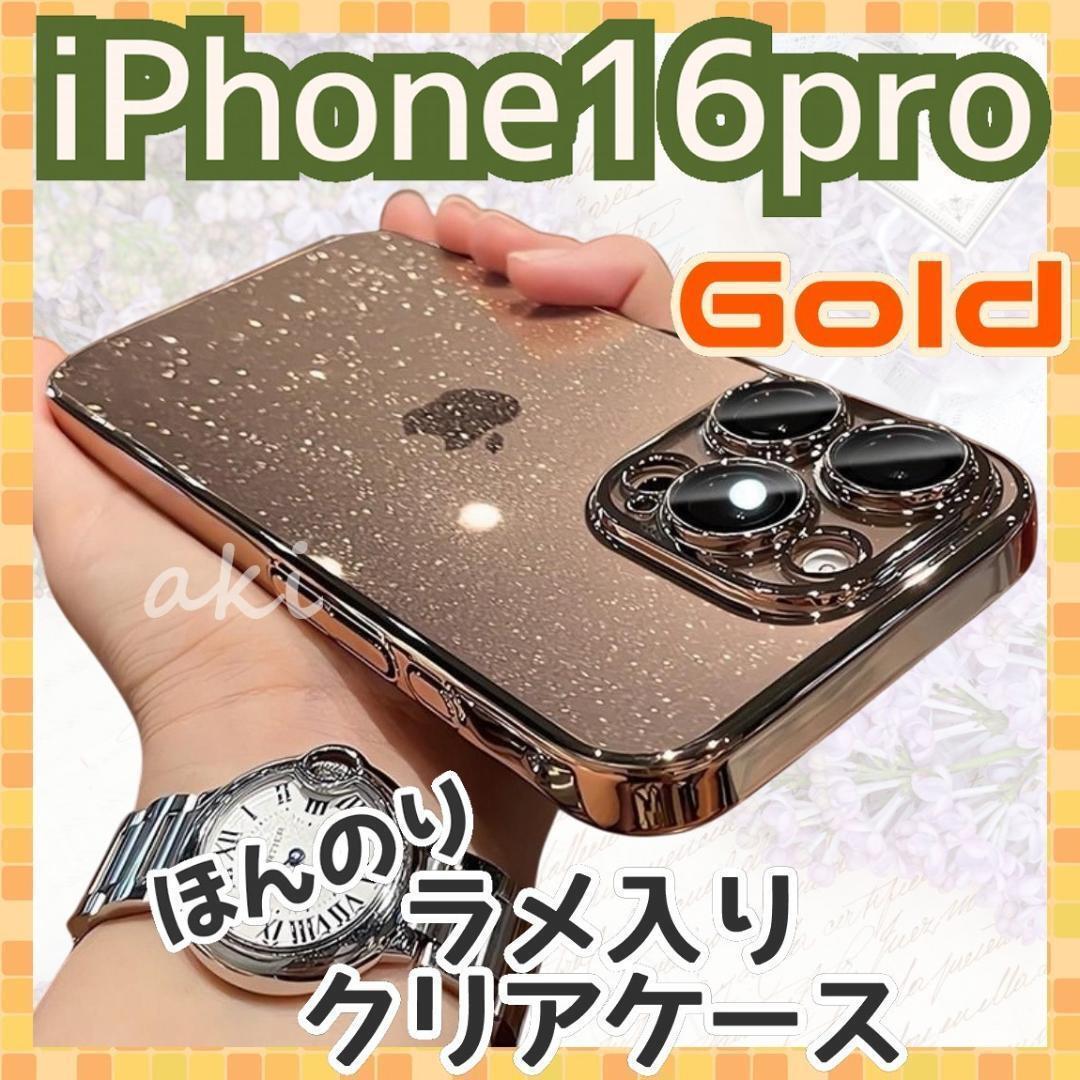 > iPhone16pro ケース メタリック レンズ保護 ゴールド ほんのりラメ